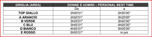 L'area di partenza sarà determinata sulla base del “personal best time” dichiarato dagli iscritti in fase di iscrizione (entro al massimo il 31/01/2026) e conseguito negli ultimi 4 anni in una maratona ufficiale (in alternativa, in una mezza maratona ufficiale ma solo se non si ha un personal best time da dichiarare sulla distanza di maratona).