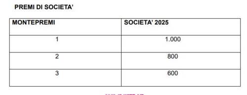 Il montepremi di società è riservato alle società partecipanti, qualsiasi sia la modalità di iscrizione degli atleti, che abbiano almeno un numero di 20 arrivati.