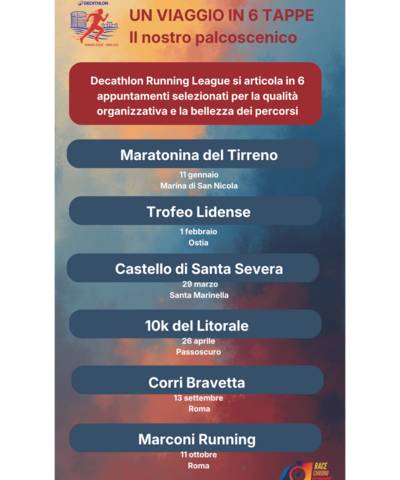 Tutte le info sul sito: https://racechronoservice.it/dechatlon-running-league/
