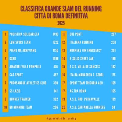 La Podistica Solidarietà Trionfa nel Granmde Slam del Running Città di Roma 2025!