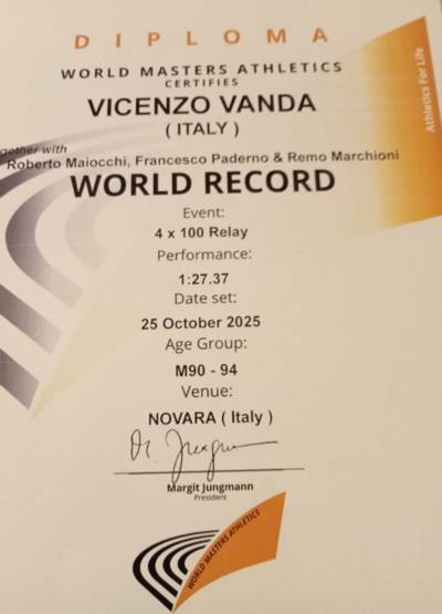 Come se non bastasse, ai Campionati Italiani Indoor Master di Padova, nel febbraio 2026, Vincenzo ha contribuito a conquistare altri due record mondiali indoor, questa volta precedentemente detenuti dagli Stati Uniti: