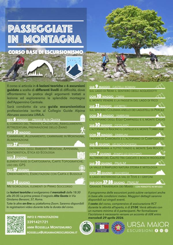 La prima lezione si terrà in presenza presso il negozio Alta Quota, Via Girolamo Benzoni 37, Roma.