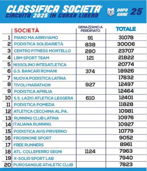 Ricordate che In Corsa Libera è un circuito podistico in collaborazione con OPES Latina e FIDAL (provinciale di Latina e Lazio), con gare su strada e passeggiate non competitive in cui si costruiscono classifiche per categoria, società e una generale.
