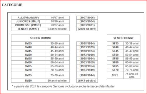 Le quote sono uguali per tutte le categorie, la medaglia sarà consegnata all’arrivo.