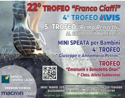 1° classificato R.S. di 150 € + premi in natura + 22° Trofeo Franco Ciaffi;
