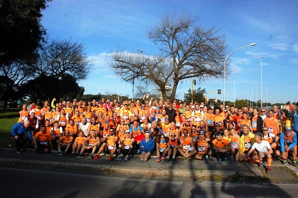 Foto del gruppone Orange nei pressi della partenza della mezza maratona più famose d'Italia ROMA OSTIA 12 MARZO 2017 - ISTRUZIONI
