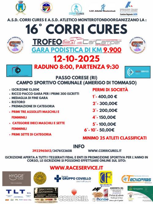 INFO: WWW.CORRICURES.IT /WWW.ATLETICOMONTEROTONDO.IT Cell.: 392 2965612- 347 6123608
