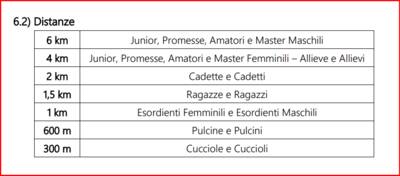 Ci saranno varie distanze, a seconda della categoria di appartenenza: