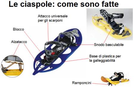 per le racchette da neve sono indispensabili gli scarponi alti, che proteggono la caviglia, possibilmente con la fodera in goretex o materiali similari, che aiutano (aiutano, non risolvono completamente) il problema dell'infradiciamento dei piedi. È bene farsi consigliare dal negoziante (se tecnicamente preparato) la corretta manutenzione dello scarpone, utilizzando i materiali più adatti ai vari tipi di tomaia. Esistono in commercio ottimi prodotti che impermeabilizzano lo scarpone.
