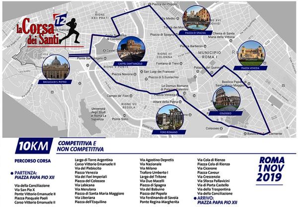 Diverse migliaia di atleti ormai da anni si riuniscono il primo novembre, per partecipare a questa manifestazione ed i motivi sono semplici: i gazebo all’ombra di Castel Sant’Angelo, il riscaldamento dentro il Colonnato del Bernini, e poi un percorso ondulato dentro al centro storico di Roma, il Colosseo, la Bocca della Verità con tanto di arrivo su via della Conciliazione di fronte alla maestosa Basilica di San Pietro.