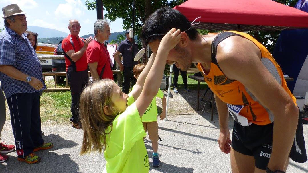 Il nostro Top Domenico Liberatore riceve la medaglia di finisher da una bimba di Campotosto