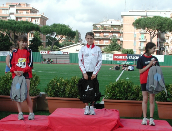 Erika sul gradino più alto del Podio. Il giorno 4 giugno, a Pomezia si sono svolte le finali del Campionato Regionale di Atletica Leggera per Società su pista (FIDAL) riservati ai ragazzi.
