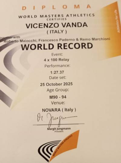 Come se non bastasse, ai Campionati Italiani Indoor Master di Padova, nel febbraio 2026, Vincenzo ha contribuito a conquistare altri due record mondiali indoor, questa volta precedentemente detenuti dagli Stati Uniti: