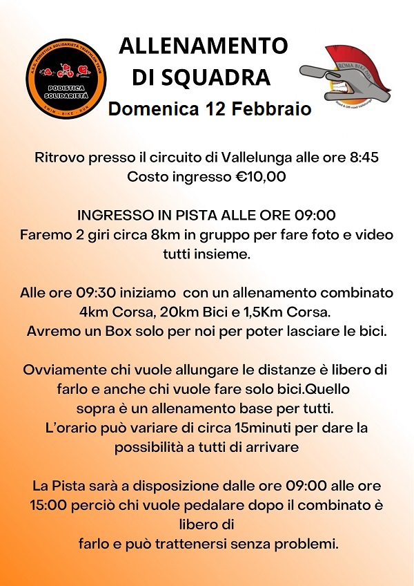 Sarà l’occasione per fare una piccola simulazione di un Duathlon in vista di quello di Sabaudia del 19 Febbraio.