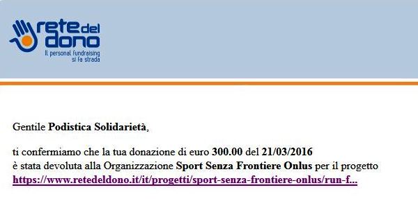 Sport Senza Frontiere: donazione di Redazione Podistica, 06/05/2016