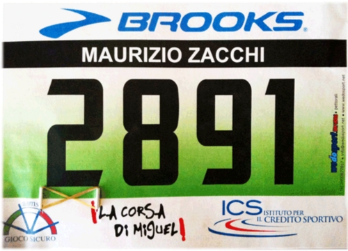 Il mitico pettorale di Maurizio ....la prima corsa della mia vita alla “veneranda” età di 46 anni. Una bella sensazione aver tagliato il traguardo dopo un’ora di corsa cercando di mantenere l’obiettivo che mi ero posto all'inizio ovvero i 6 minuti a km, un’andatura sulla quale mi sentivo abbastanza confidente.