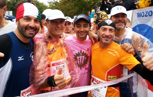 Tiro fuori il telefono e prima lo affido ad un rumeno che sembrava aver visto per la prima volta un cellulare. Dopo aver capito che non era in grado di farci una foto decido di scattarla io e chiedo ad un top runner ungherese di scattarci questa benedetta foto tutti insieme.