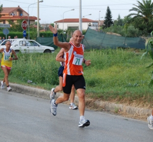 «Forza Pulcinella!!! Ci vediamo più avanti!». Atteso ed immortalato il “passaggio” del consiglio comunale, faccio quello che NON avrei dovuto fare…, lo so, ho ancora nelle orecchie l’urlo di Marco (mio marito) ed Amalia «NO!!! ricordati che non DEVI correre, se vuoi guarire!!!» … e … corro… corro … corro… verso l’ottavo km per immortalare Nicola al suo passaggio… mannaggia a questi orange che mi fanno diventare “irrazionale”… sapevo che Nicola è uno che va forte … ho poco tempo per arrivare all’ottavo… ma zoppico e mi rendo conto di aver fatto una “cacchiata” a farmi prendere dall’entusiasmo… e mentre ormai corro su una “zampa sola” e penso che Nicola passerà sicuramente prima che io ci arrivi, mi “strombazza” alle spalle una moto… è Antonio, amico del “mio” sindaco accorso a “raccattarmi” e voliamo all’ottavo km molto prima di Nicola… che ancora una volta mi guarda stupito ed interrogativo… e così di “volata” lo immortalo ancora a vari chilometraggi fino al traguardo che taglia in 01:15:52!